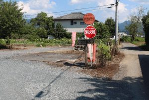 県道72号を道なりに真っ直ぐ進むと、進行方向左手に、札所22番の入口を示す石地蔵が見えてきます。