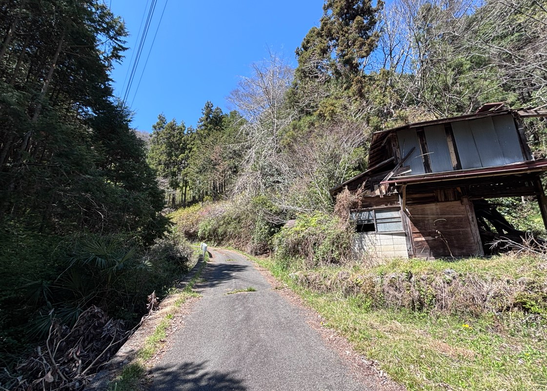 この集落は廃屋も沢山あります。誰かひとりでも人は住んでいるのでしょうか。そんなことを考えながら、ひたすらアスファルトの坂道を登り続けていきます。