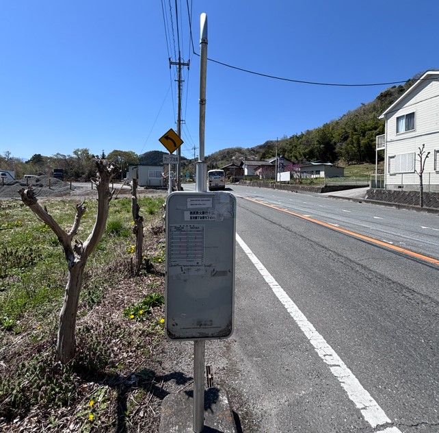 まずはバス停「馬頭尊前」から平石馬頭尊堂を目指します。バス停を降りたら、右手側(乗ってきたバスの進行方向とは逆方向)へ向かいます。
