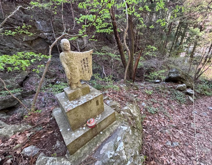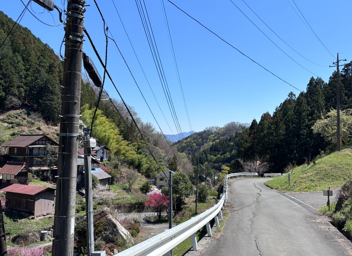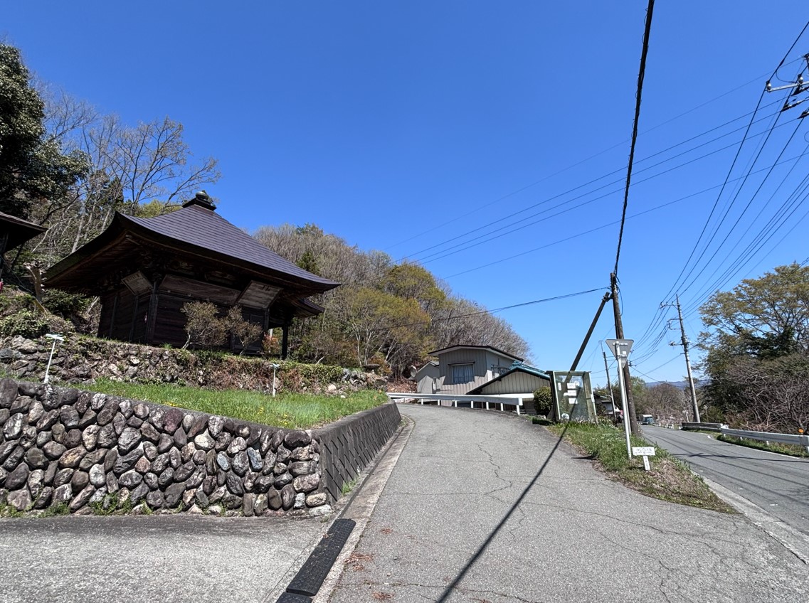 坂を下った先には、頼母沢(たのぶざわ)というエリアの集落に出ます。秩父方面の山並みも見えて景色が美しい場所です。ただ、集落には人っ子一人見当たりません。こうした非日常的な空間が、巡礼の緊張感を高めてくれます。