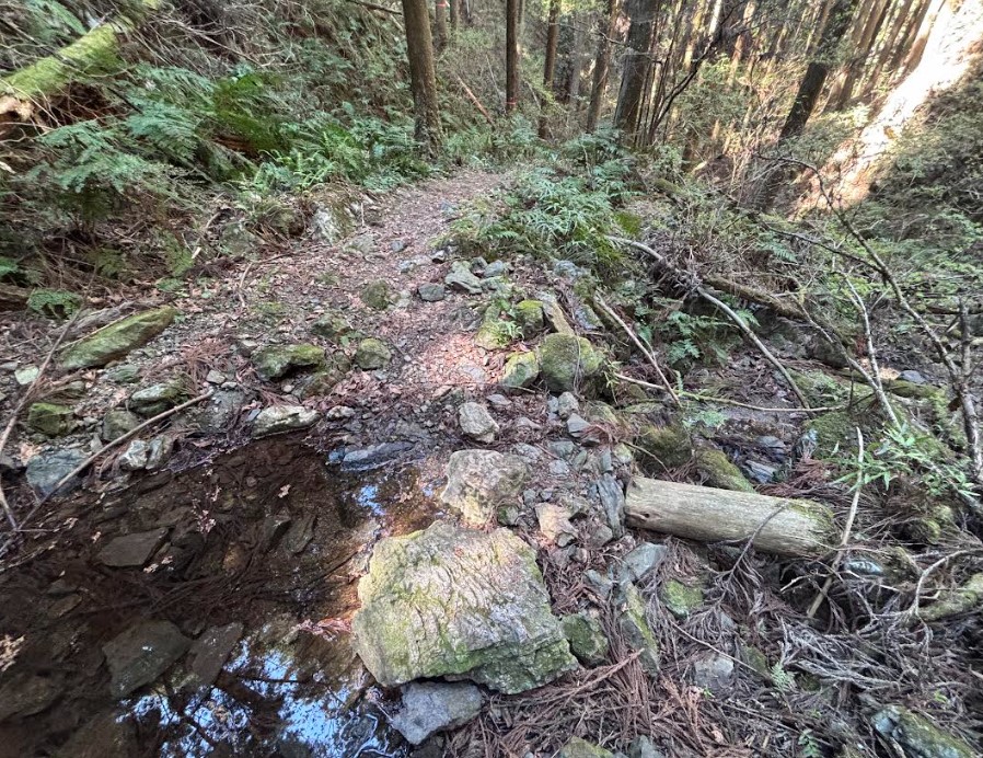 ただし、途中、どこを歩けばいいの!?と思うような場所にも遭遇するので油断できません。画像では伝わりずらいですが、何カ所か人工的に砂利が積まれている場所があります。砂利の斜面を歩くことになるので注意が必要です。