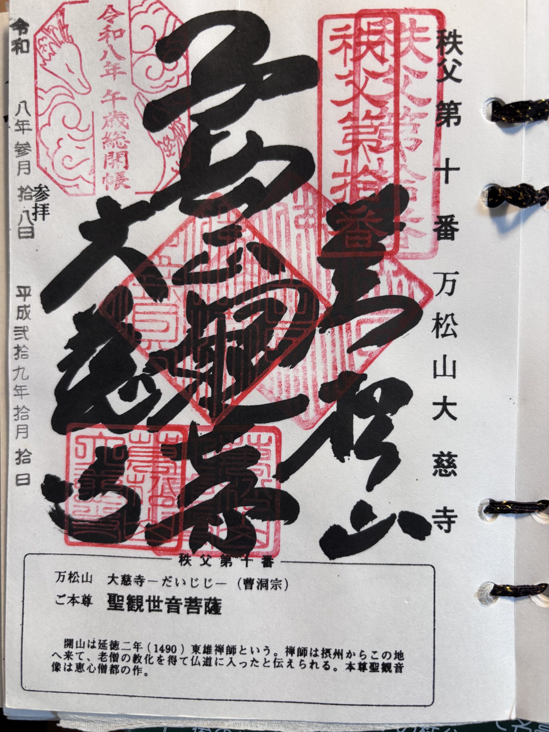 秩父札所10番・大慈寺の御朱印