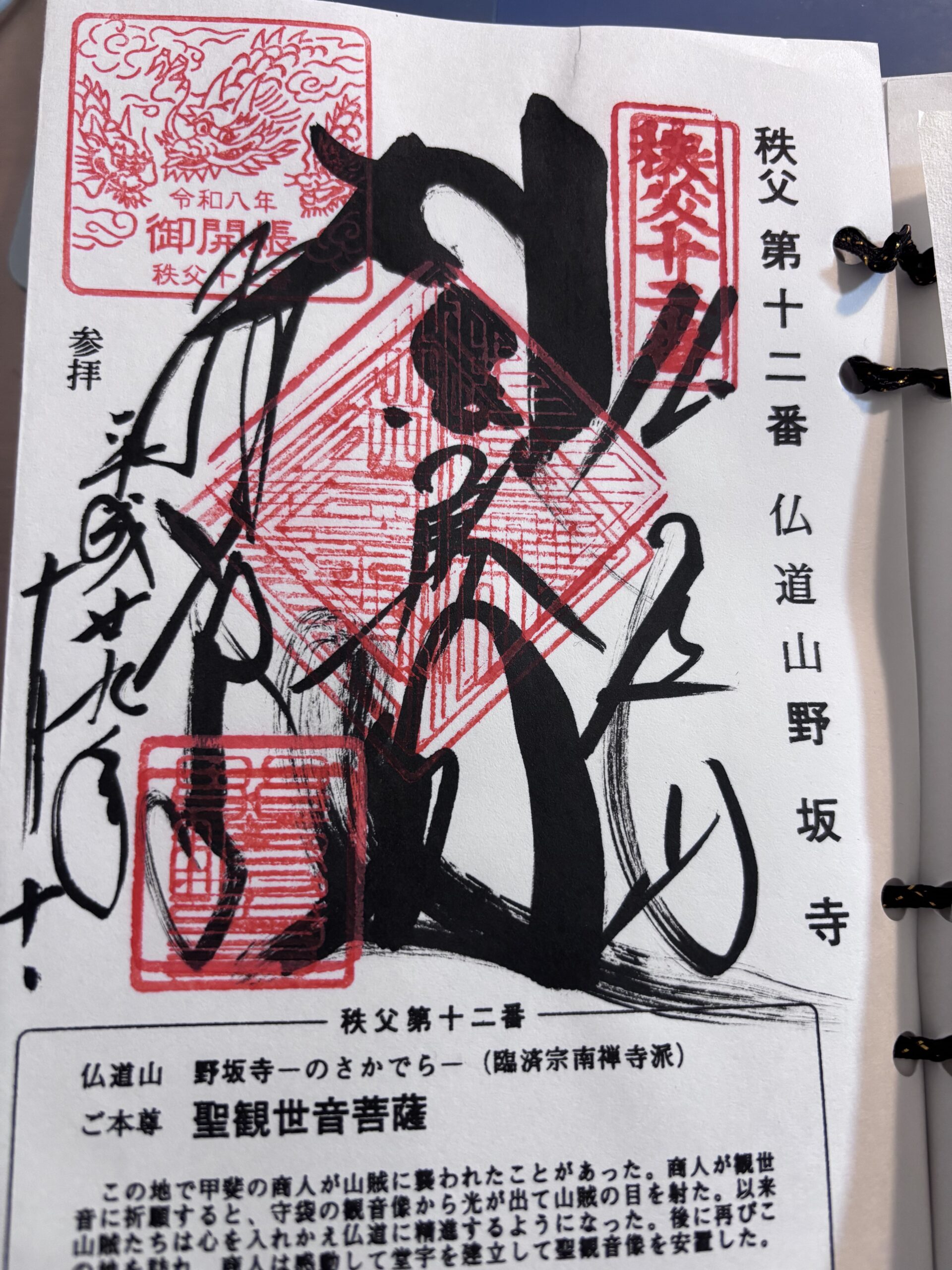 秩父札所12番・野坂寺の御朱印