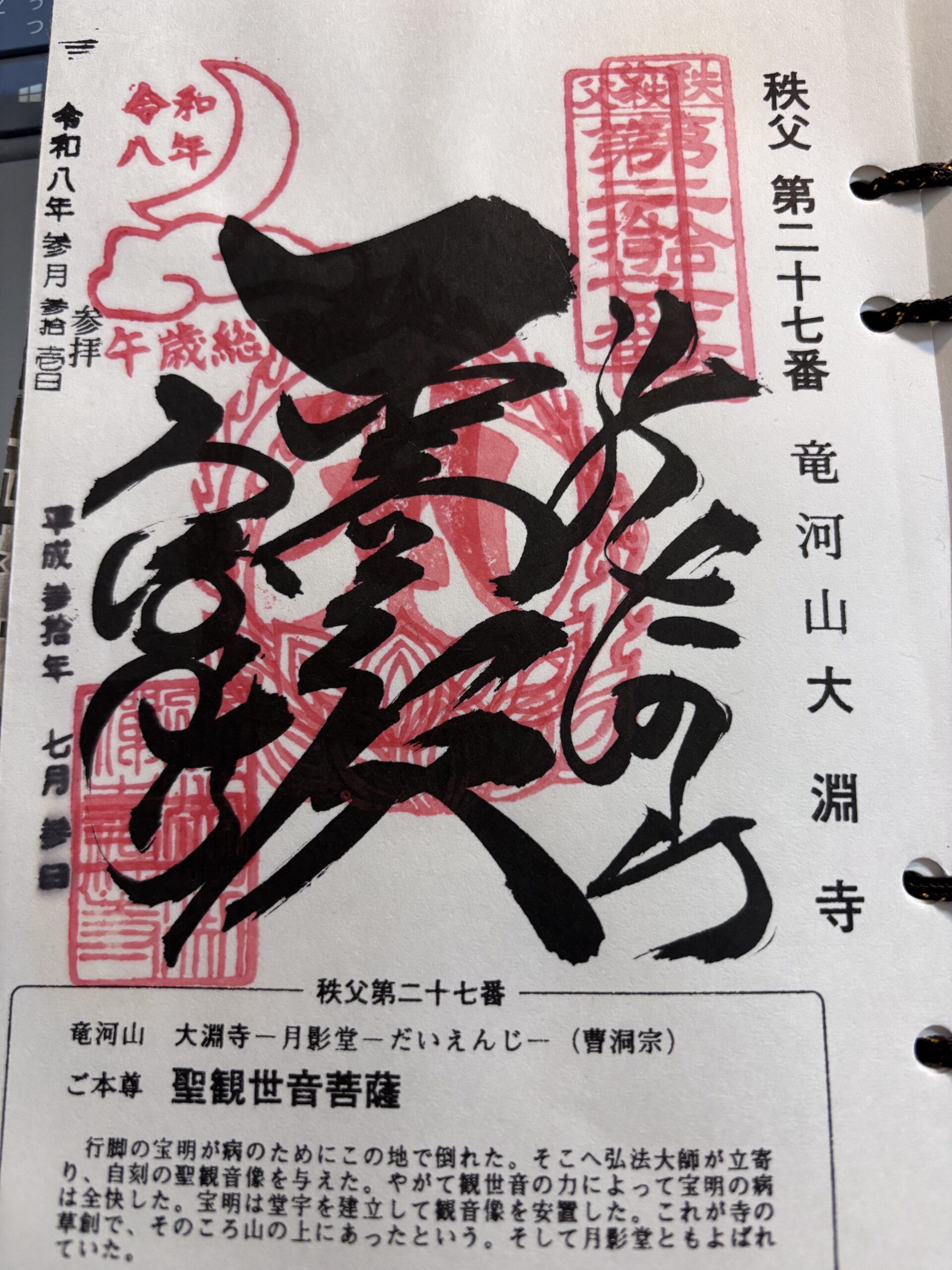 秩父札所27番・大淵寺の御朱印